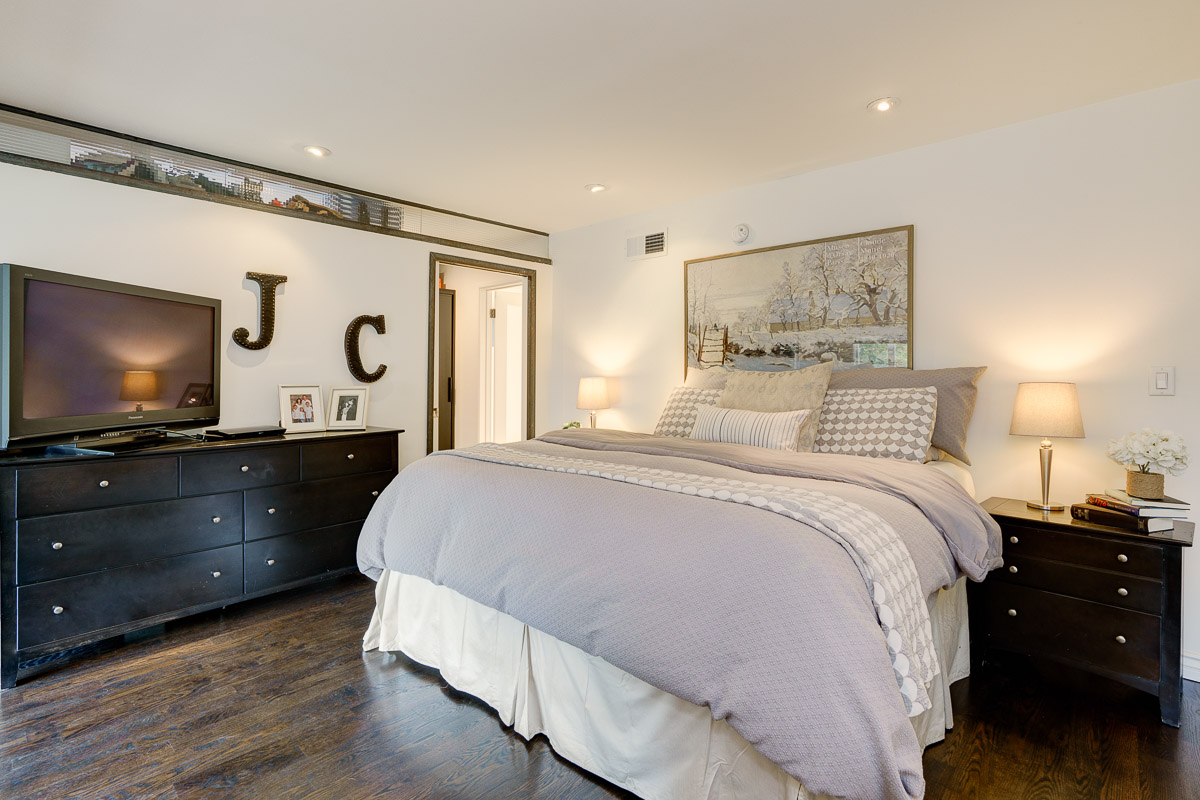 The foyer opens to an inviting landing that leads to the upstairs public spaces with a formal dining room, living room, two bedrooms and two baths, as well as a light-filled kitchen and a picture-perfect balcony area that overlooks the shade dappled lawn below. The updated kitchen features Dacor appliances, custom, glass-fronted cabinetry and granite counters. The expansive lower level with a central family room, a luxurious master suite with an office or sitting area, and an additional bedroom with an adjacent three quarter bath. Highlights of the residence include two fireplaces, curved walls, elegantly remodeled bathrooms and rich, hardwood floors.