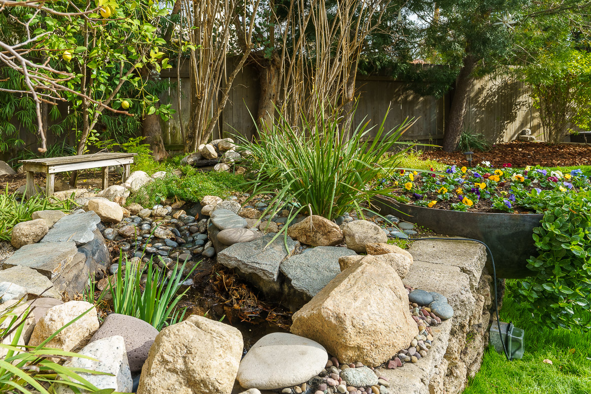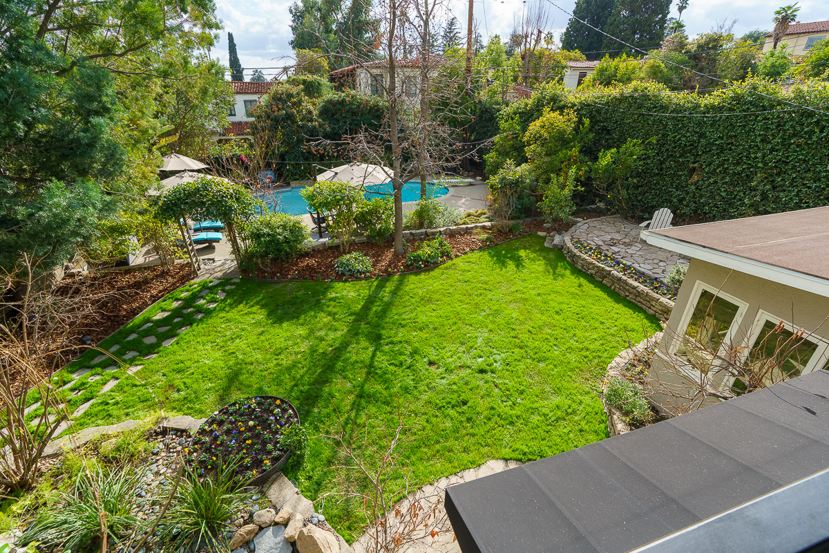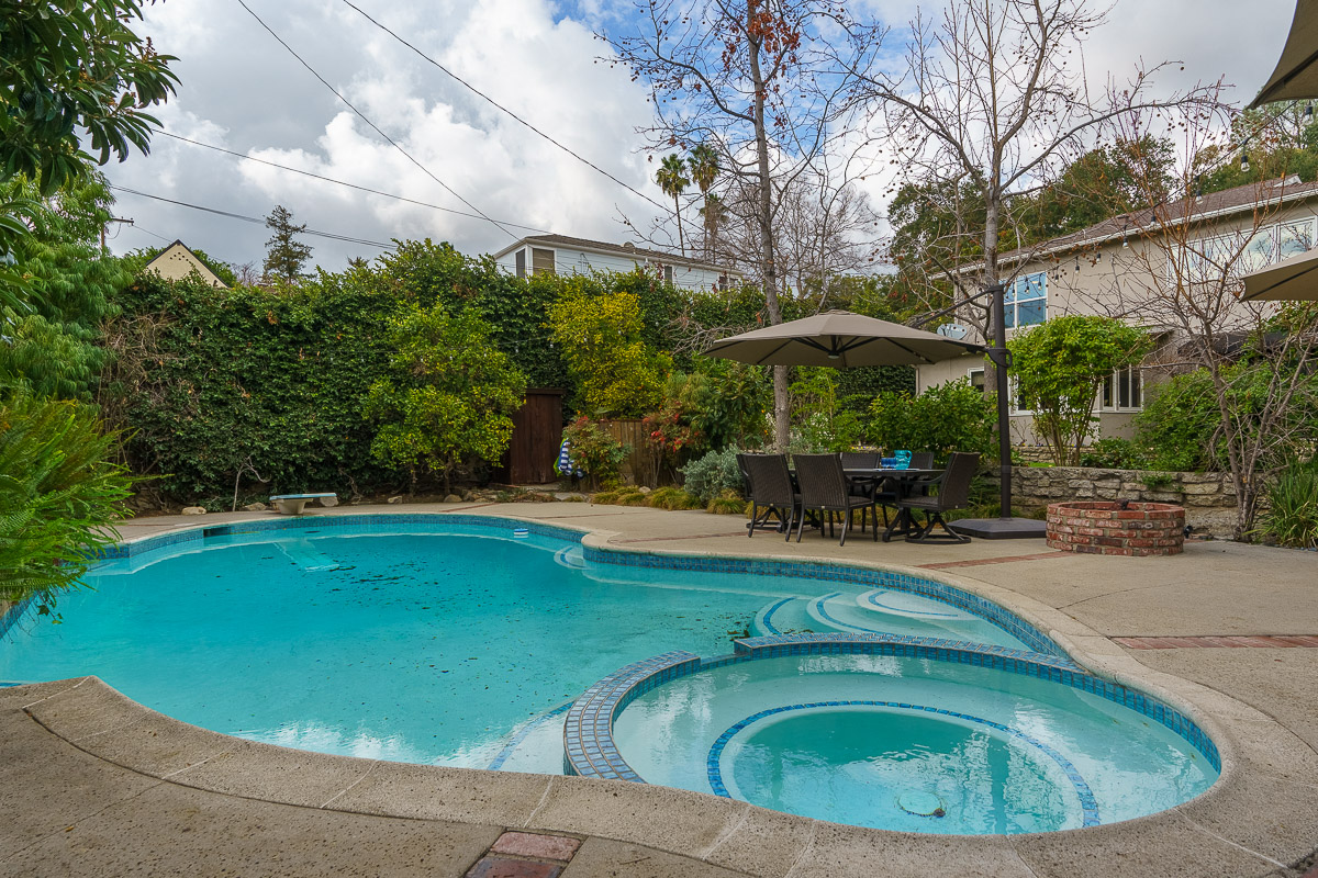 The home has an abundance of natural light that streams in via tall French doors, including those that open to the rear terraced garden. The expansive landscaped yard features a tranquil pond, a pool oasis and numerous outdoor entertaining areas. The serene lot has drought tolerant, native plants as well as an abundance of fruit trees. This home epitomizes the sought-after Southern California lifestyle. Don’t miss the beautiful property that would be a wonderful place to call home.